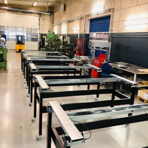 Består af følgende: TIG Svejser – Co2 Svejser, Kantbukker, Saks, Valse, Drejebænke og fræsere. CNC maskiner.